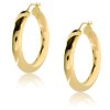Κρίκοι επίχρυσοι ασημένιοι 925, σε απλό σχέδιο. Είναι στρογγυλοί με διάμετρο 4 cm και επιφάνειά που φαρδαίνει στο κάτω μέρος.