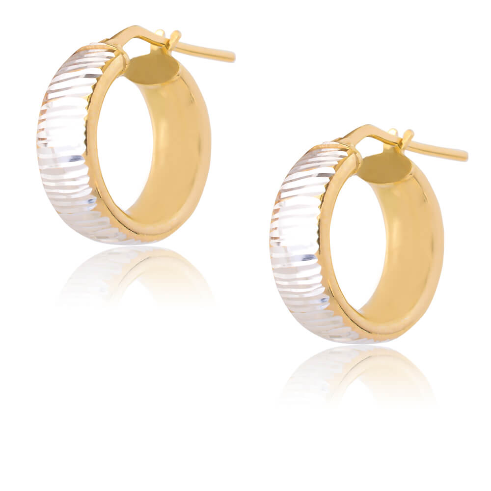 Ασημένια κρικάκια φαρδιά, σε δίχρωμο σχέδιο με επιχρύσωμα και επιπλατίνωμα. Διαθέτουν ευκολοφόρετο κούμπωμα με κλιπ και έχουν διάμετρο 1.7 cm και πλάτος 0,6 cm . Τα σκουλαρίκια κοσμεί ανάγλυφο σχέδιο στην επιφάνειά τους με οριζόντιες ραβδώσεις, που δημιουργούν ένα εντυπωσιακά λαμπερό αποτέλεσμα! Το επιχρύσωμα και το επιπλατίνωμα προστατεύει το ασημένιο κόσμημα από το μαύρισμα και του δίνει λαμπερό χρώμα. Ένα μοναδικό ζευγάρι σκουλαρίκια σε υπέροχο ιταλικό σχεδιασμό, ιδανικά για ξεχωριστές εμφανίσεις! Ιδανικά για γυναίκες κάθε ηλικίας. Επιλέξτε τα για εσάς ή για μια φίλη που αγαπά το εντυπωσιακό κόσμημα. Τα ασημένια κρικάκια φαρδιά διαθέτουν συσκευασία δώρου και έντυπο εγγύησης προδιαγραφών προϊόντος από την Kosmimatothiki.