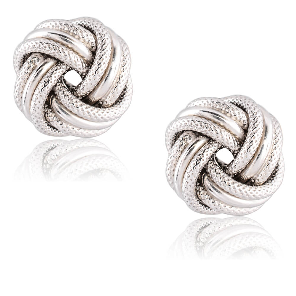 Ασημένια σκουλαρίκια κόμποι επιπλατινωμένα, με τετραπλό πλέξιμο και λείο λουστρέ και σαγρέ φινίρισμα. Ιδανικά για καθημερινές εμφανίσεις και για όλες τις ηλικίες!