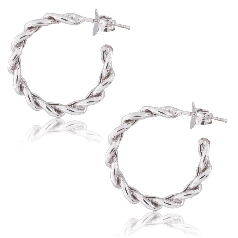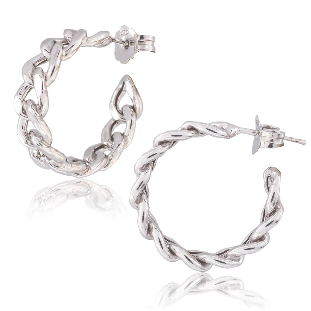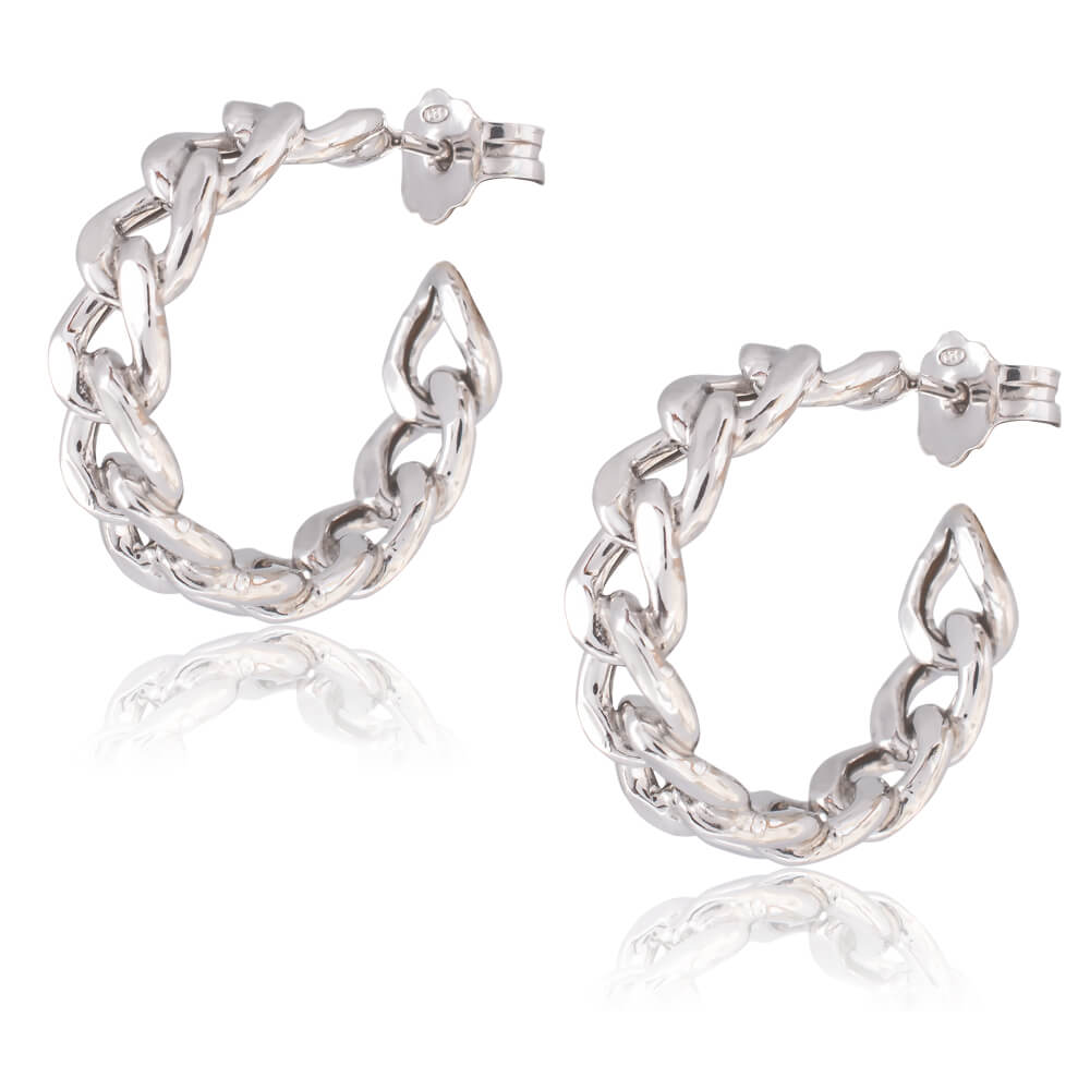 Κρίκοι αλυσίδα από ασήμι 925 επιπλατινωμένο, σε πρωτότυπο σχέδιο. Είναι στρογγυλοί με διάμετρο 2.1 cm και έχει σχέδιο αλυσίδας με αραιή πλέξη.