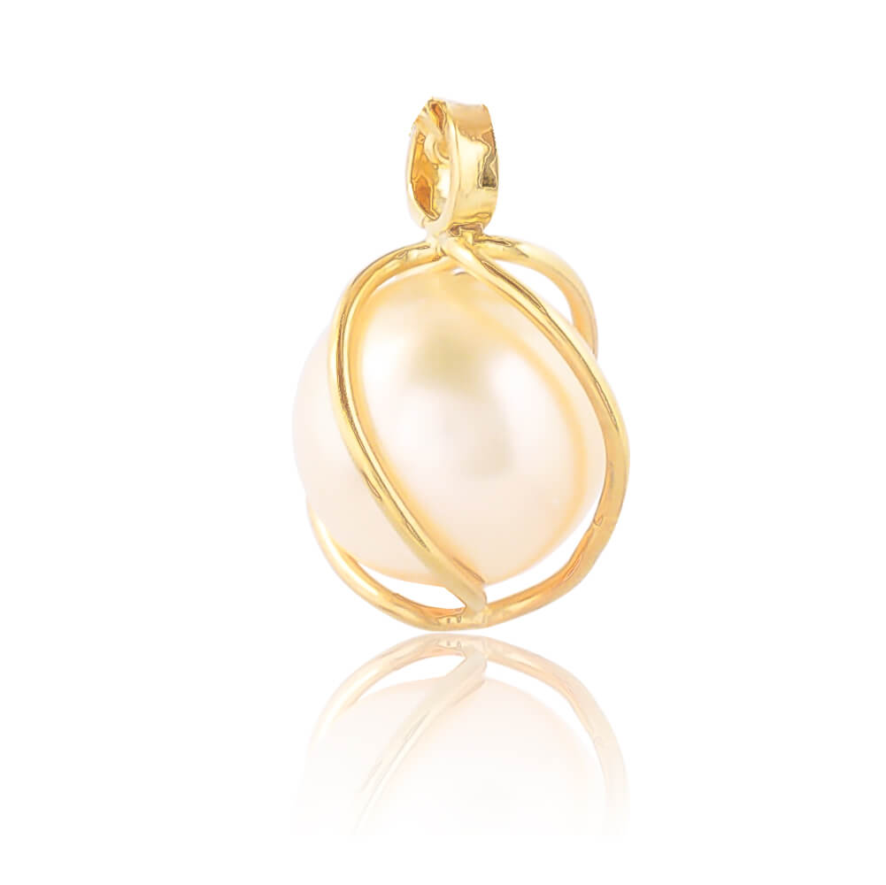 Μαργαριτάρι μενταγιόν χρυσό 14Κ σε χειροποίητο σχέδιο. Η περιστροφική βάση αγκαλιάζει υπέροχα το μαργαριτάρι (καλλιεργημένο) με διάμετρο 7 – 7.5 mm.