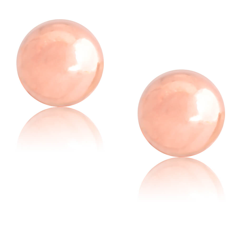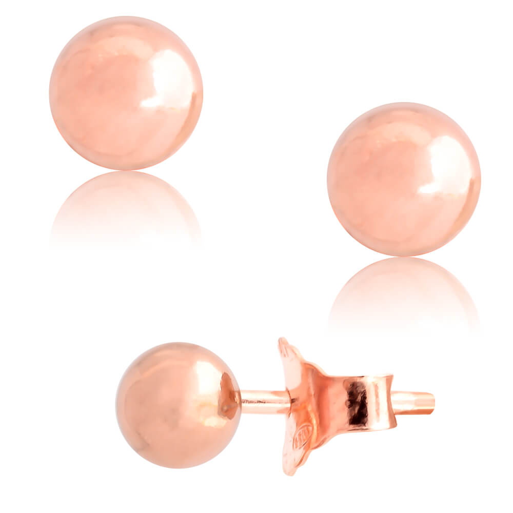 Σκουλαρίκια ροζ μπίλιες ασημένια, με επιχρύσωμα σε ροζ χρώμα, με διάμετρο 5 mm και λεία επιφάνεια με λουστρέ φινίρισμα.