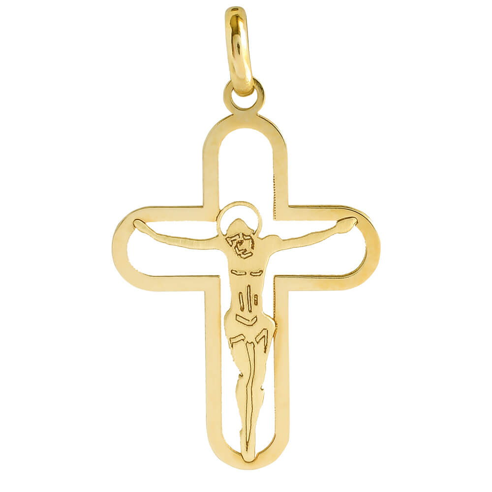 Σταυρός οικονομικός ανδρικός χρυσός 14Κ, με τον Εσταυρωμένο, σε διάτρητο σχέδιο. Μπορεί να συνδυαστεί με τις προτεινόμενες αλυσίδες.