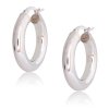 Ασημένιοι κρίκοι κλασικοί, επιπλατινωμένοι, σε φαρδύ σχέδιο. Είναι στρογγυλοί με διάμετρο 2.5 cm και πλάτος 5 mm.
